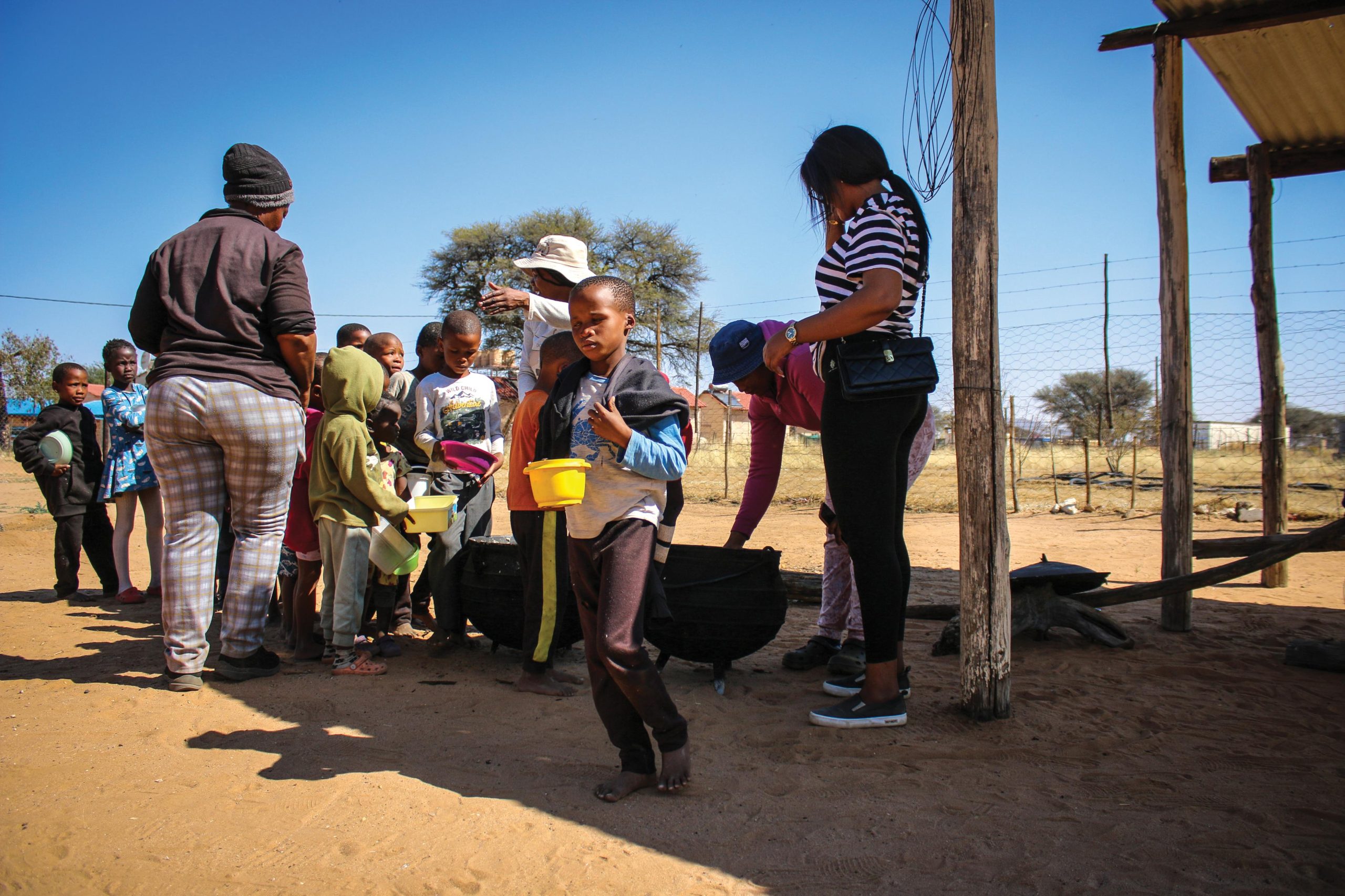Negumbo’s soup kitchen is, as of recently, one of 40 being supported by the United Nations World Food Programme (WFP) in the Omaheke Region – a region which has one of Namibia’s highest malnutrition rates. WFP supplies fresh vegetables and protein-rich pulses to help ensure the children’s dietary needs are met.