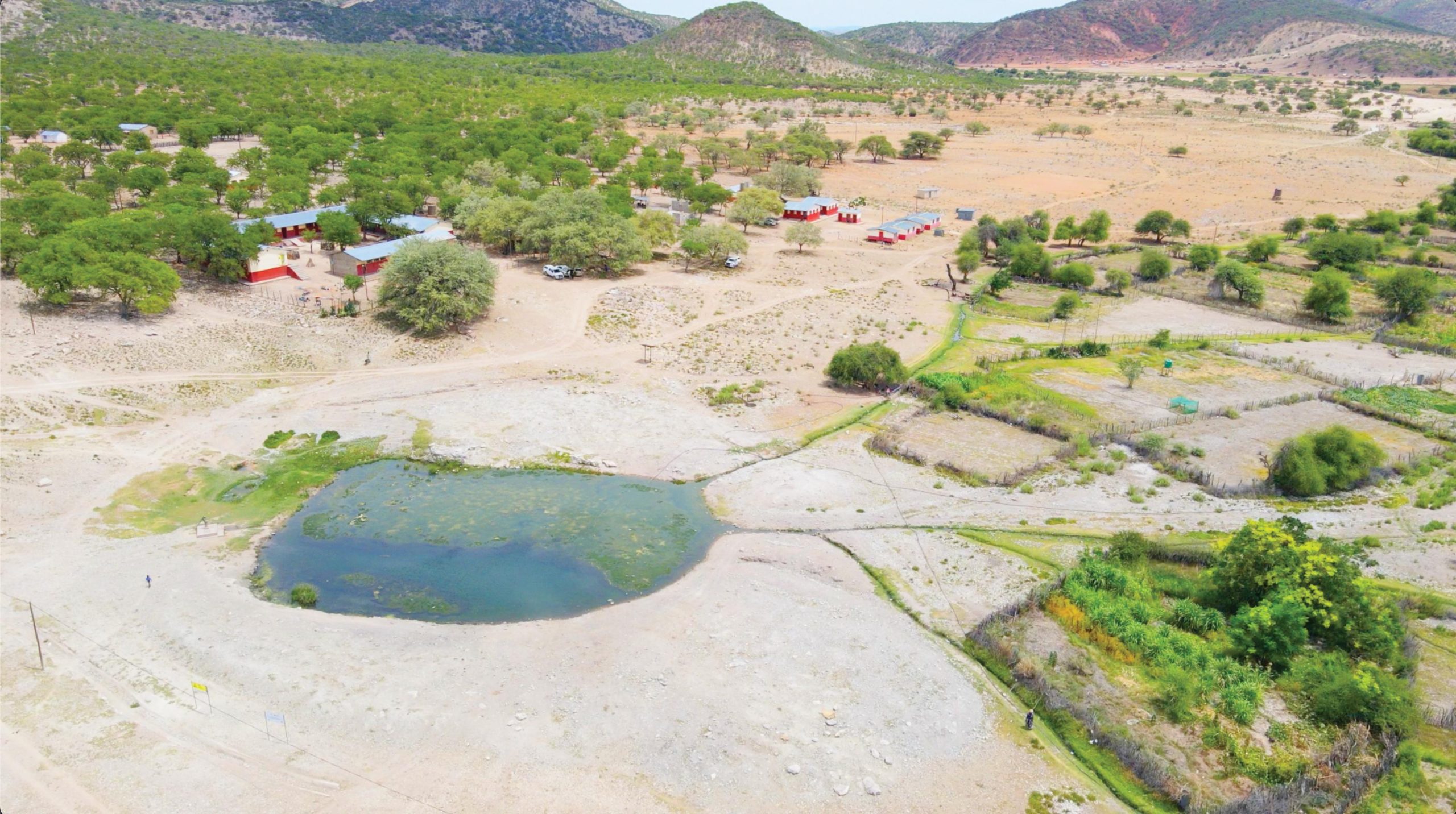 In Omaiopanga, a small village near Opuwo surrounded by sand and scattered vegetation, a NILALEG-supported waterhole has become a lifeline. From its edges, narrow man-made channels carry water into nearby community gardens. Built and maintained by residents, these gardens grow carrots, cabbages, red chillies, spices, sugar cane, watermelon and other crops. The steady flow of water allows the gardens to remain productive even when their owners are away. Families use the produce to feed themselves and sell surplus for income. The waterhole also serves livestock and wildlife, reinforcing the connection between human livelihoods and the surrounding ecosystem.