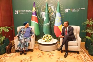President Netumbo Nandi-Ndaitwah urges stronger investment in climate-resilient water security and sanitation across Africa at the African Union summit in Addis Ababa.