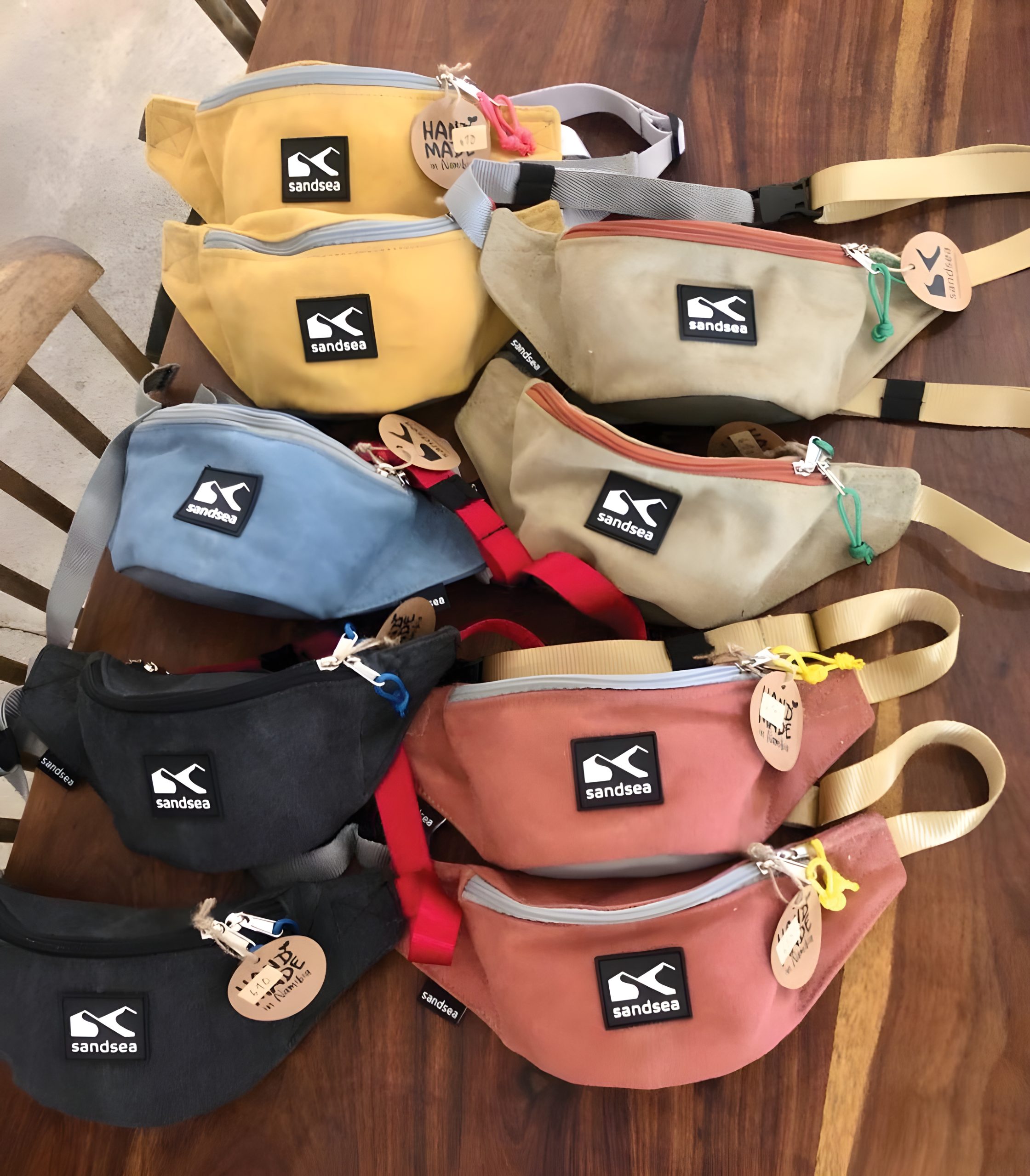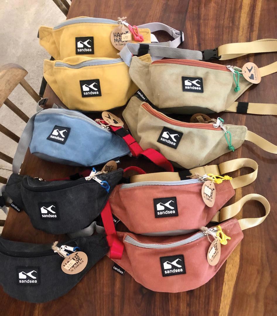 Today, Sandsea supplies a selection of lodges and shops, as well as being showcased at the Namibian Craft Centre in Windhoek. What started as a simple idea has grown into a locally made collection of moonbags, handbags, crossover bags and cycling handlebar bags, designed for both everyday use and life on the move.